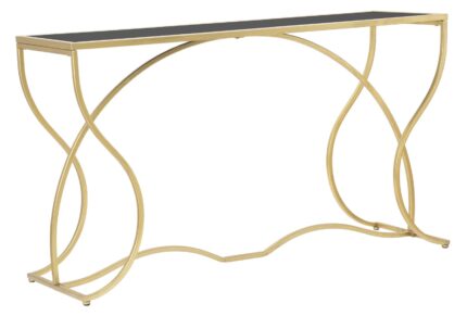 Console in tessuto bianco con piano in simil marmo completa di 3 cassetti. Le maniglie, le gambe e le rifiniture dorate donano un tocco di eleganza.