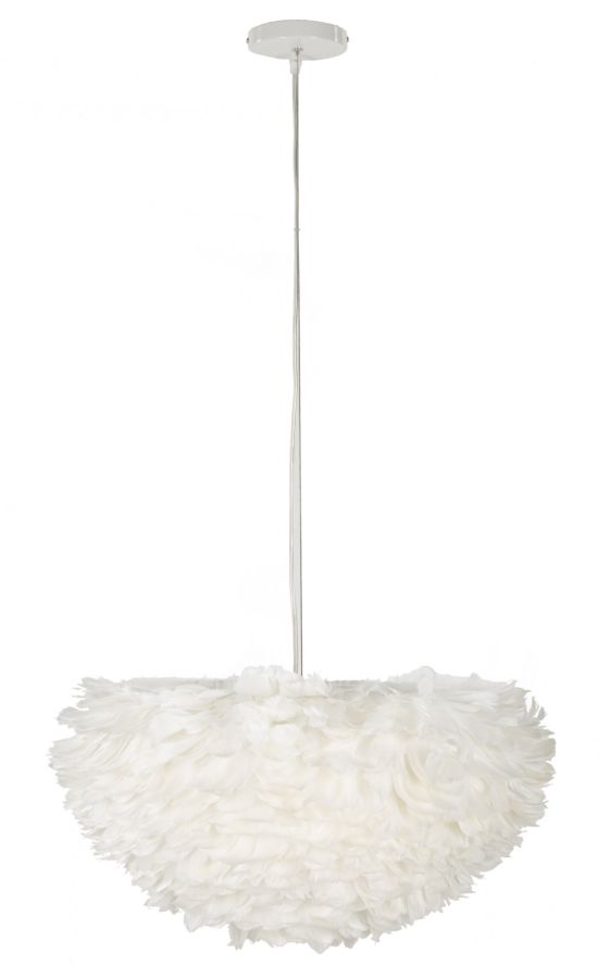 Semplice lampadario composto da un insieme di piume sintetiche.