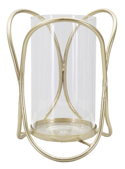 Portacandele in metallo dorato con eleganti decorazioni floreali.