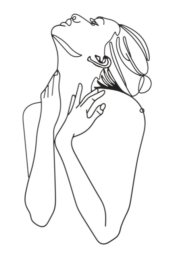 Pannello decorativo 3D da parete in metallo nero dai tratti delicati e sinuosi che vanno a comporre la figura di una ragazza.