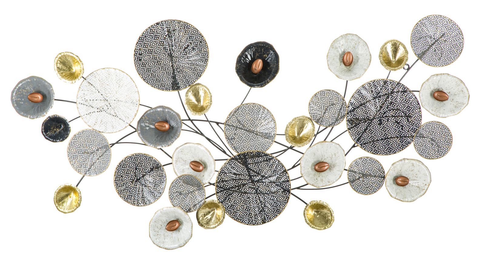 Pannello astratto in metallo. I pannelli 3D sono il nuovo trend per decorare le pareti. Il metallo si declina in forme geometriche, vegetali o animali che conferiscono un’allure glamour e sorpendente ad ogni ambiente